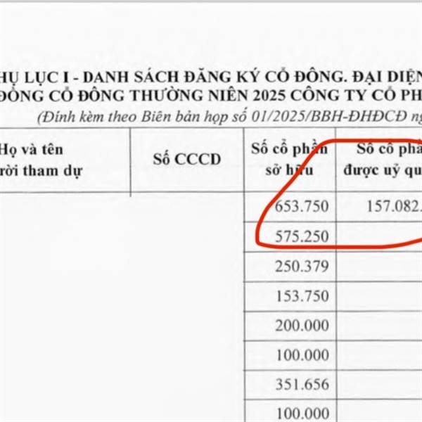 Tháng 4/2025 (ĐHCĐ thường niên 2025), số cổ phiếu đc uỷ quyền cho chủ tịch HĐQT: 157tr cổ