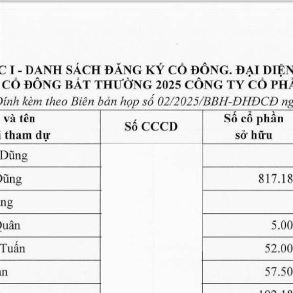 Tháng 10/2025 (ĐHCĐ bất thường), số cổ phiếu đc uỷ quyền cho chủ tịch HĐQT: 192tr cổ