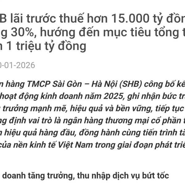Quý 4 theo báo cáo SSI reseach SHB lãi cực lớn. Nhưng. Lái k đánh thì vẫn vậy . Cầm qua tháng 2/2026 , mới có giá 2x. Tin thì cầm , k thì bán