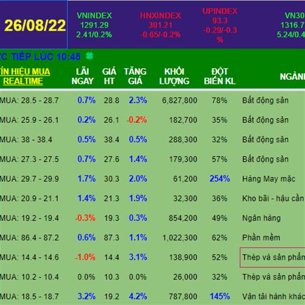 Phiên giao dịch ngày 24/08 mở cửa với tâm lý tương đối tích cực, VN-Index tạo một khoảng trống tăng giá 5 điểm sau ATO. Nhờ sự...Thêm