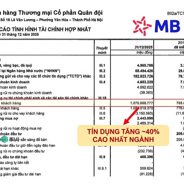 Chỉ trong 3 tháng cuối năm, dư nợ cho vay của MBB tăng tới 140 ngàn tỷ, đưa tăng trưởng tín dụng cả năm lên tới 40%, đứng số 1 về tăng trưởng quy mô cho vay.