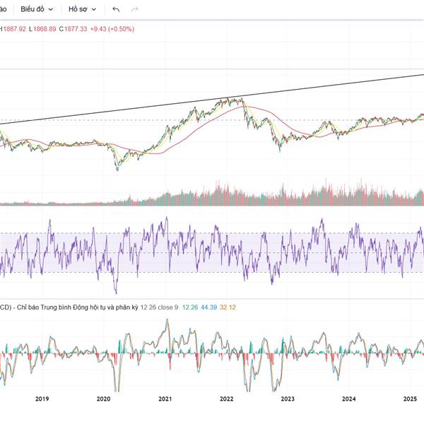 Khối lượng (Volume) tăng nhưng giá không tăng: VN-INDEX đi ngang vùng 1.870 - 1.900 với các phiên Vol cực lớn nhưng giá không thể bứt phá.