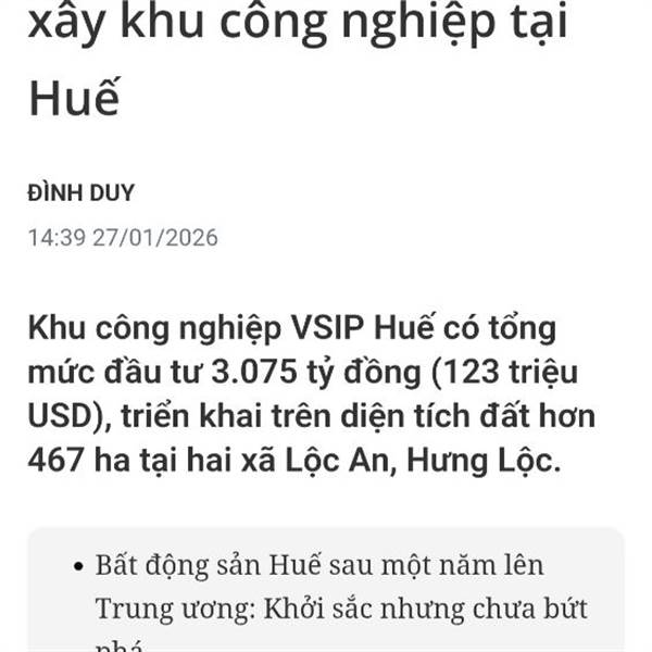 BCM tiếp tục phát triển khu công nghiệp ở thành phố TW Huế. Cơ hội 4 năm có 1 cho ai có tầm nhìn.