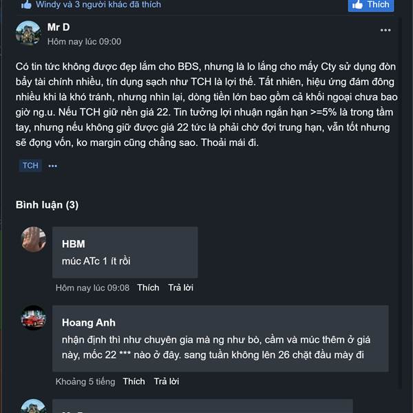 TCH đang cho thấy hơi yếu thế so với dòng. Có vẻ dòng tiền đang chưa ưu tiên cho TCH tăng trở lại mà cần tích lũy, nếu mốc 22 không trả lại được thì có lẽ mức độ rủi ro khi tích lũy vùng này là khá ca...Thêm