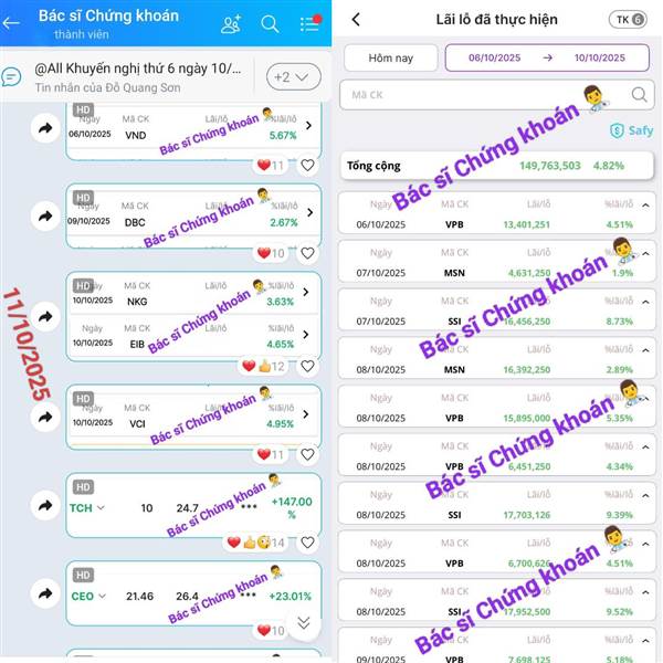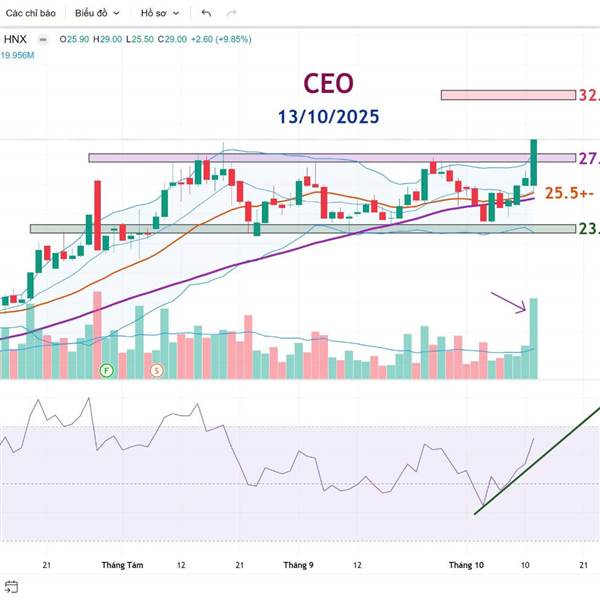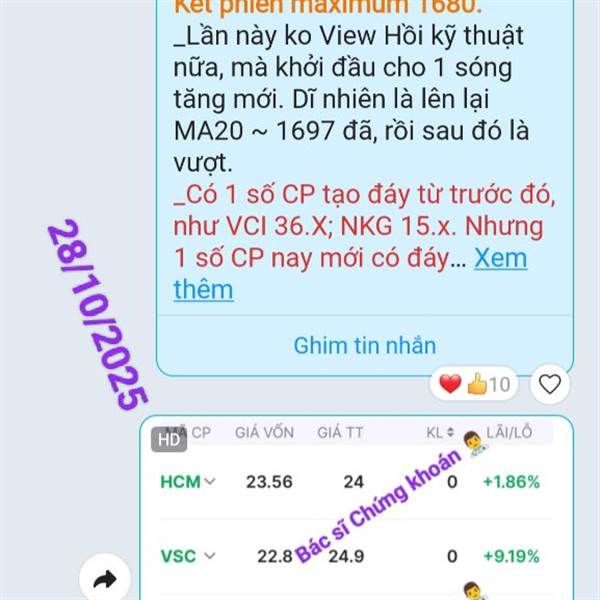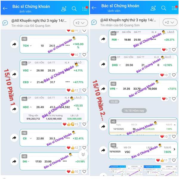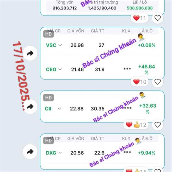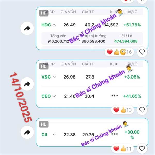 14/10/2025: Bất động sản vẫn dẫn Sóng. _Mình gáy lại các vị thế ôm từ chân Sóng nhé ae. Chứ gáy vài % T+ ae lại bảo ăn li ăn line 😁 _HDC +51%; CEO +41%; CII +30%; DIG +28%; PDR +25%. 💵 _Sáng hưng phấn ...Thêm