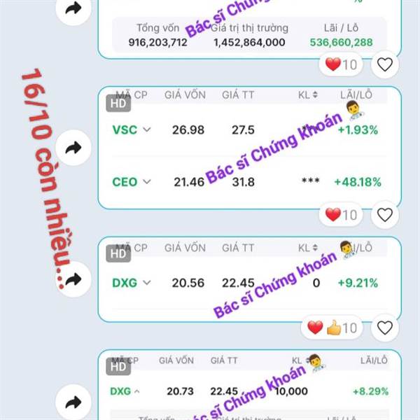 DXG mới mua T+ mà lại tím à, hẳn là vị thế mới bắt hôm qua cho chim lợn khỏi ý kiến. Mà cái ảnh bìa video DXG nó to lù lù đấy thây. Hàng T1; T2,5 lãi +9% rùi. 💵 _DIG tím; PDR +3,14%; HDC +1,94%, CEO x...Thêm
