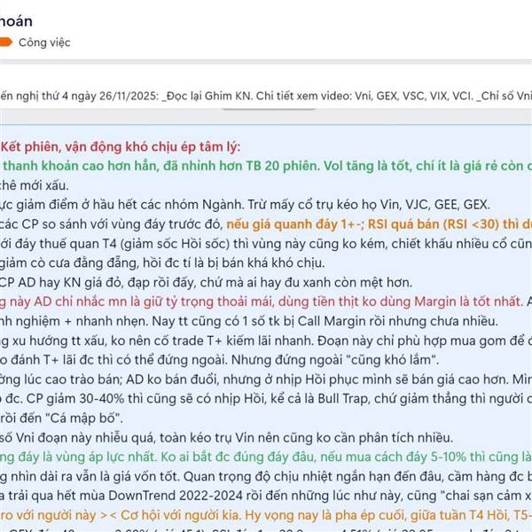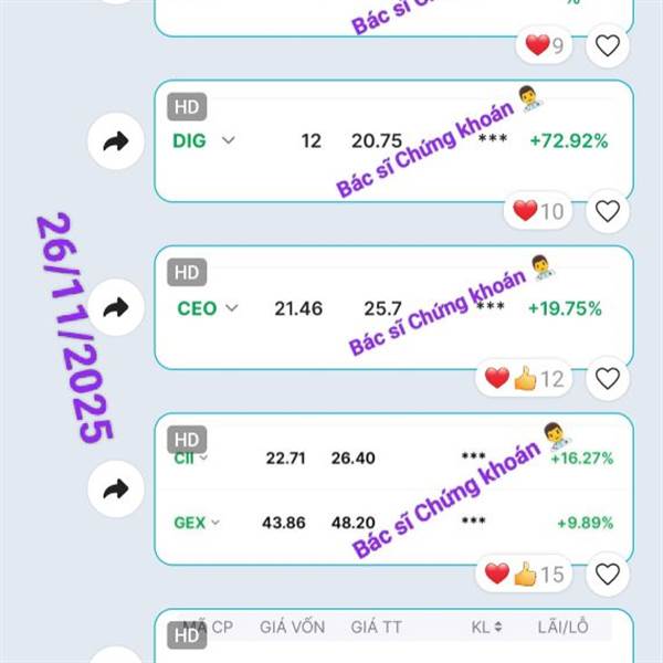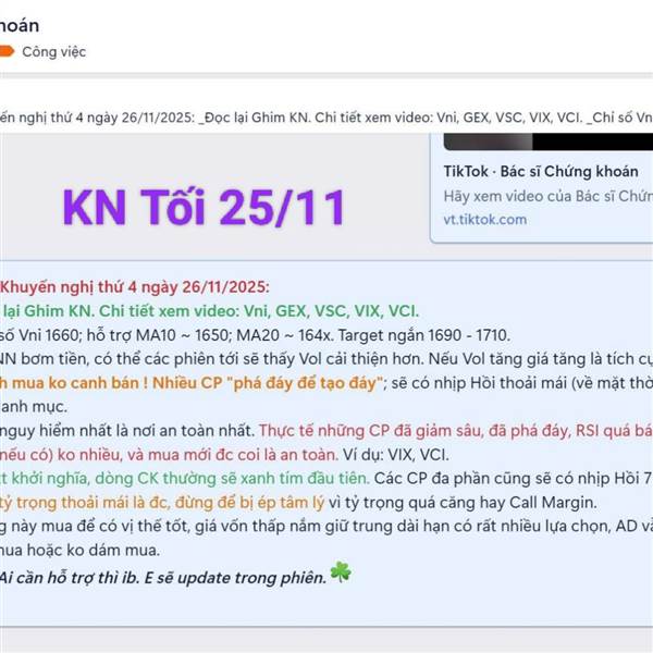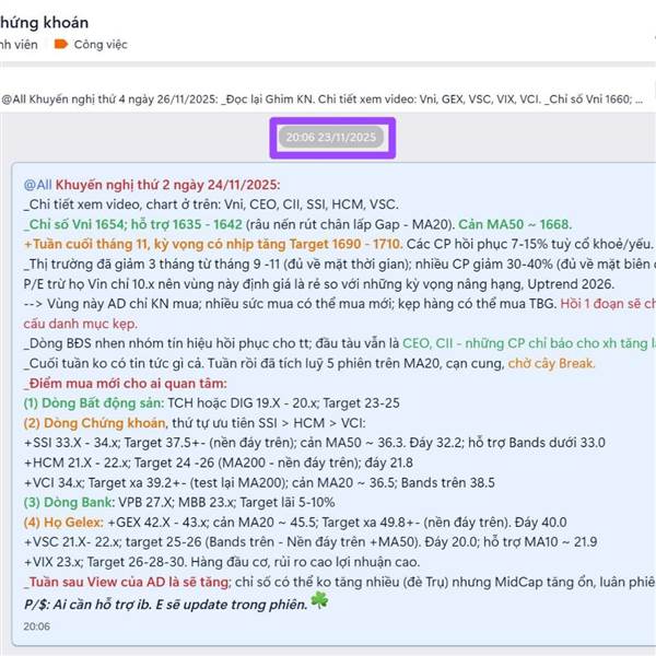 17/11/2025: Danh mục vẫn tăng túc tắc hẹ hẹ CII +5,57%; CEO +2,71%; HDC +3,04%; VSC +2,25%; các mã khác xanh nhẹ. 🌾 _Thị trường tăng trong nghi ngờ, vượt MA20 (1646); nhưng còn Gap - Up 5đ chưa lấp (1...Thêm