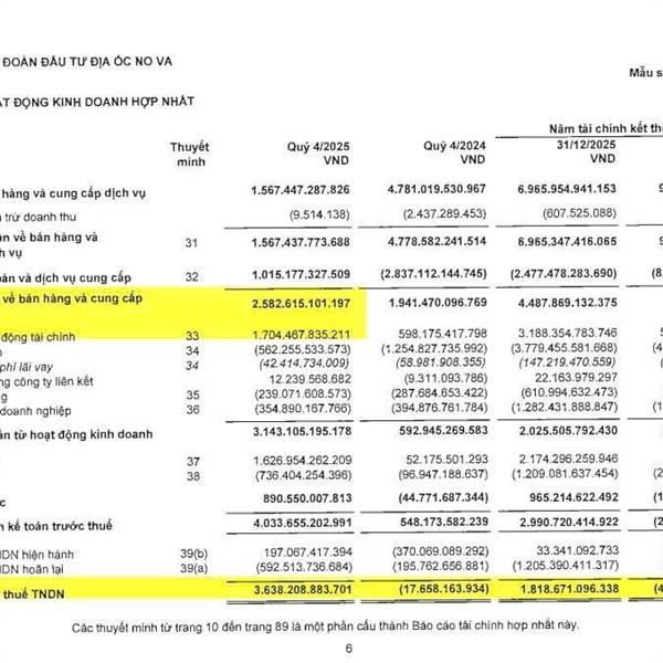 Lợi nhận gộp bán hàng và dịch vụ: 2582 tỷ => bắt đầu book lợi nhuận kinh đấy;