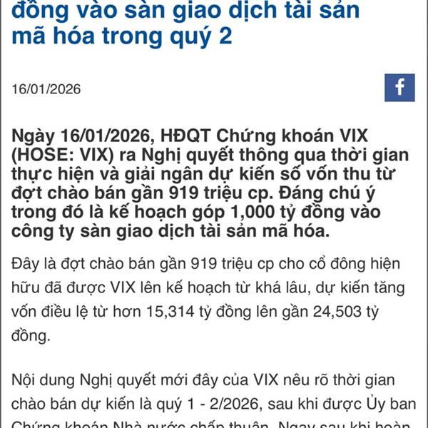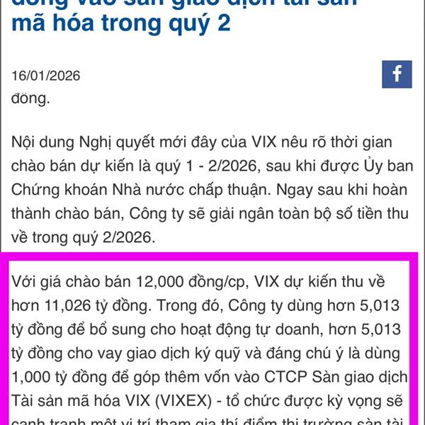 VIX: chào bán giá 10.000₫/cp tỷ lệ 100:95