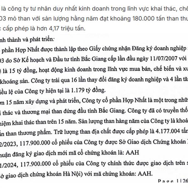 Công ty cổ phần Hợp Nhất AAH là công ty hoạt động dưới mô hình Công ty cổ phần duy nhất trong lĩnh vực khai thác, chế biến than hầm lò không có phần vốn góp Nhà nước, đồng thời là Công ty sở hữu 03 mỏ...Thêm