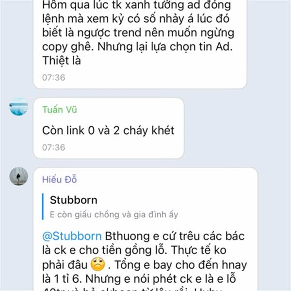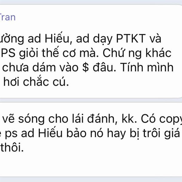 Hieu Vu Van lùa những người khốn khổ cuối cùng sang đánh Xau. Sau đó đánh cháy toàn bộ tài khoản khách. Con số thiệt hại rất to. Trong vòng 30 nó sell ngược. Trước chính nó chê bot, lùa sang coppytrad...Thêm