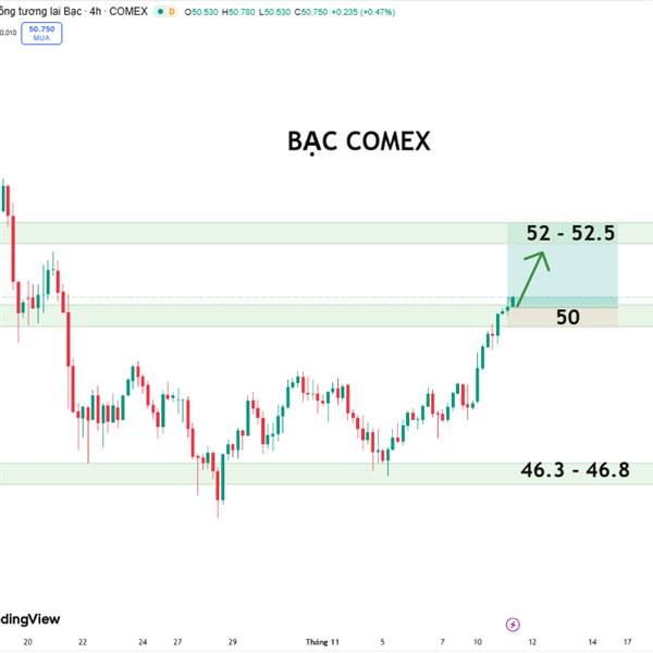 Giá Bạc COMEX Tăng Mạnh, Chạm Vùng Kháng Cự 53.3 USD