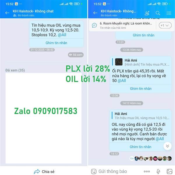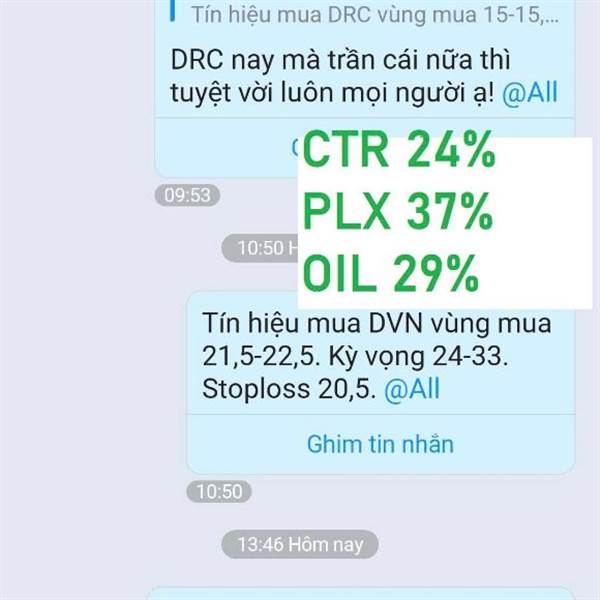 Oil mang lại lợi nhuận 45% cho room mình rồi. Ai thích vào thì add zl 0909017583 nhé.