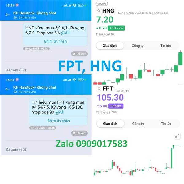 FPT, HNG có ai chung tàu không nào. Hãy mua cổ phiếu trước khi chúng tăng mới có ăn trên cái thị trường này. Còn muốn biết con nào sắp tăng hãy add zallo.