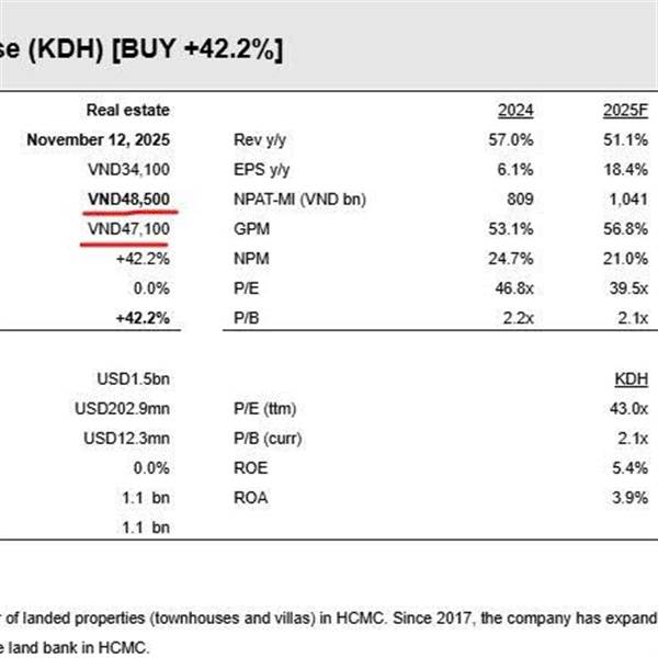 Vietcap vừa phát hành báo cáo cập nhật KDH (eng ver), nâng giá mục tiêu từ 47.100 lên 48.500, tương ứng upside 42.2% so với giá hiện tại.
