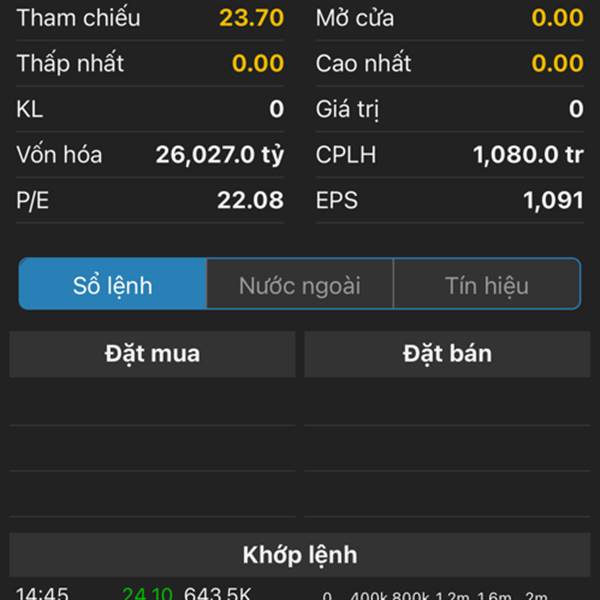 Hôm qua đóng phiên 24.1 sao nay tham chiếu 23.7 vậy các bác