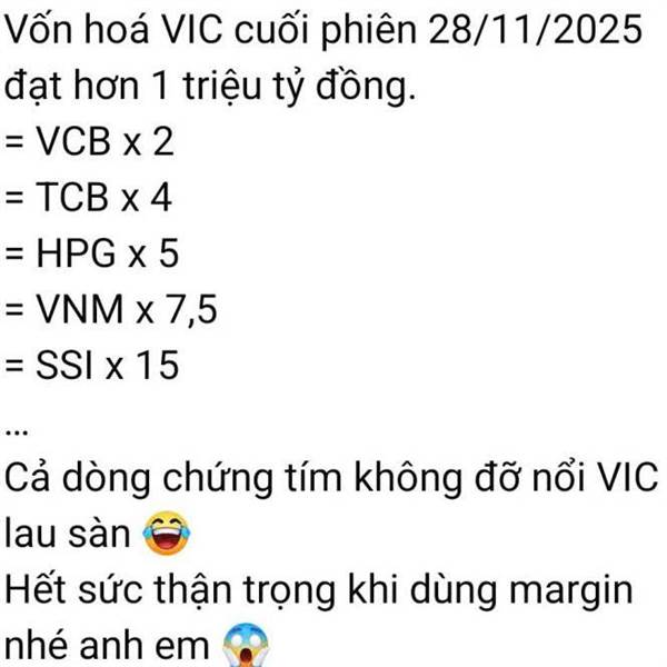 Vic, vhm nó mà sàn là vni mất hơn 1%. Tương đương khoảng 18 điểm. Ôi thật v.kl mất thôi. Nao nó tăng vốn gấp đôi nó mà hắt hơn 3% vni mất 1%. Vậy chơi bời bu.ồi j nữa. Kakak vãi thật sự lun