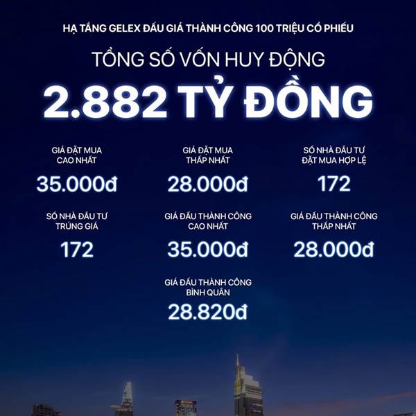HẠ TẦNG GELEX ĐẤU GIÁ THÀNH CÔNG 100 TRIỆU CỔ PHIẾU, HUY ĐỘNG 2.882 TỶ ĐỒNG💥