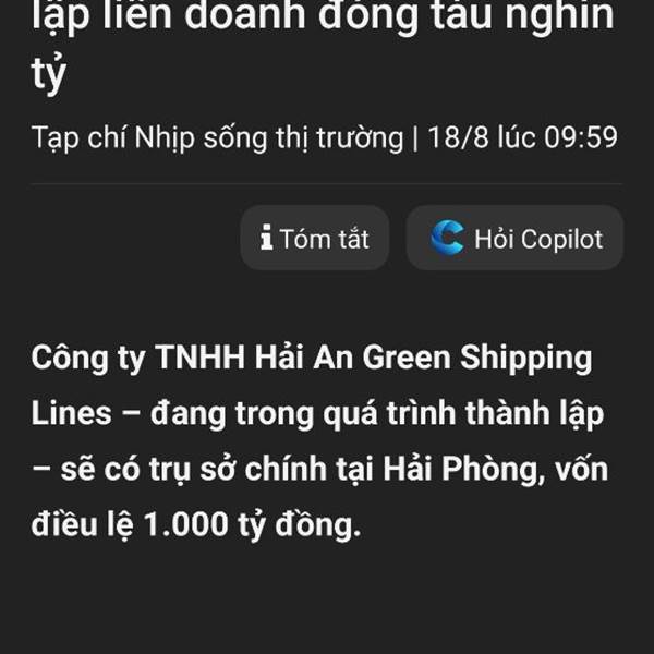 Ngày 27/9/2025 tại TP. Hồ Chí Minh, trong Lễ vinh danh Top 50 Công ty Kinh doanh hiệu quả nhất Việt Nam (TOP50 2025), Công ty Cổ phần Vận tải và Xếp dỡ Hải An (HAH) vinh dự đứng đầu danh sách. Đây là lần thứ 3 Hải An góp mặt trong bảng xếp hạng uy tín này và cũng là lần đầu tiên giữ vị trí dẫn đầu.