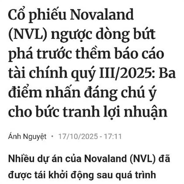 Cổ phiếu Novaland (NVL) ngược dòng bứt phá trước thềm báo cáo tài chính quý III/2025: Ba điểm nhấn đáng chú ý cho bức tranh lợi nhuận