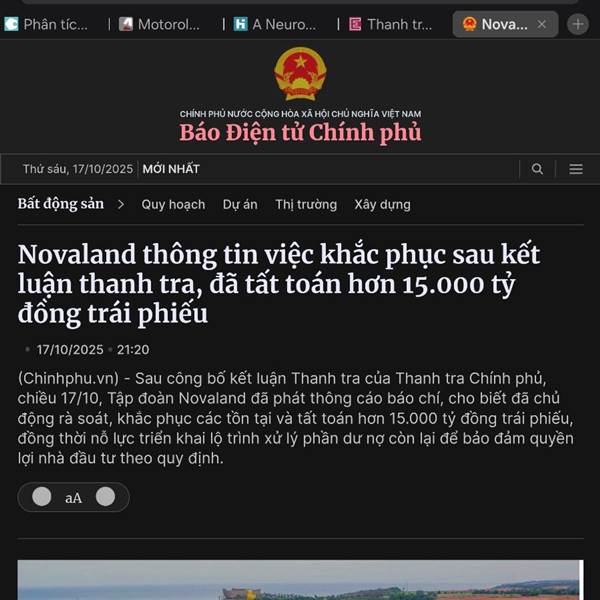 Thanh tra Chính phủ đã chuyển thông tin vụ việc sử dụng tiền trái phiếu sai mục đích tại nhiều doanh nghiệp trong hệ sinh thái Novaland sang Bộ Công an xem xét.