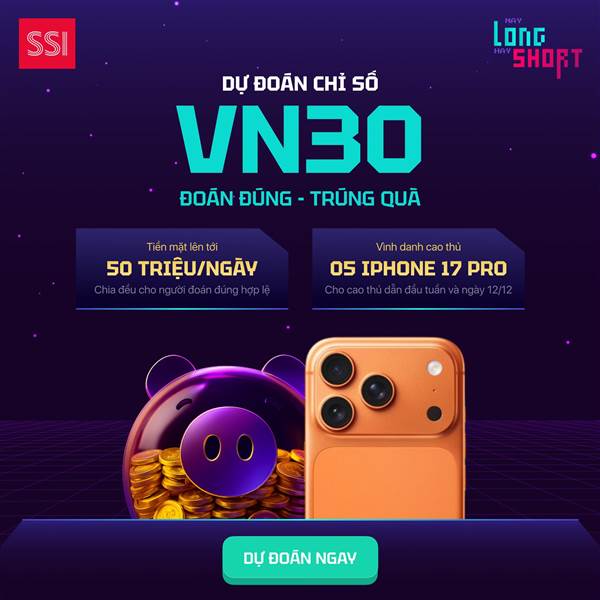 Dự đoán xu hướng VN30 mỗi ngày, chọn LONG hoặc SHORT - rinh trọn thưởng lớn!