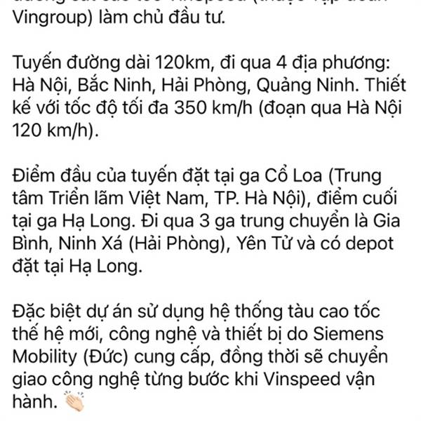 Cũng có khả năng cao VIN sẽ nhận lại đường sắt cao tốc bắc nam đấy anh em.