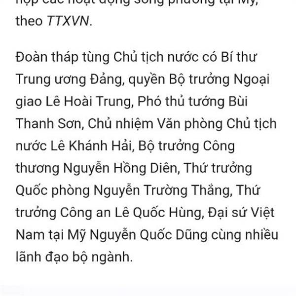 Danh sách cán bộ tháp tùng chủ tịch nước qua Mỹ hoành tráng quá - chắc ký kết gì đây nhỉ : D