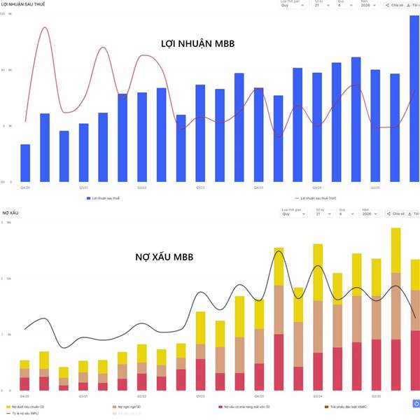 - MBB lợi nhuận quý 4 đạt 8.902 tỷ đồng, tăng trưởng gần 40% so với cùng kỳ và chính thức vượt đỉnh lợi nhuận mọi thời đại - Chất lượng tài sản cải thiện, nhờ cú "quay xe" nợ xấu (NPL) giảm mạnh từ 1...Thêm