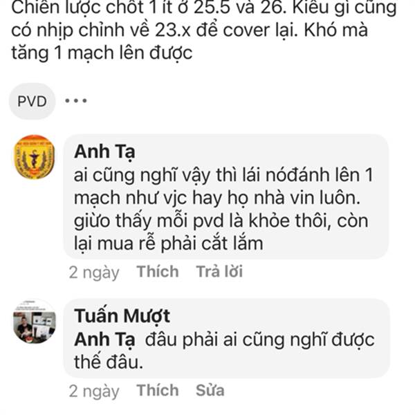 Mua thử 100 cổ cho anh em cổ đông vui. Chứ tôi đánh tập trung PVD thôi