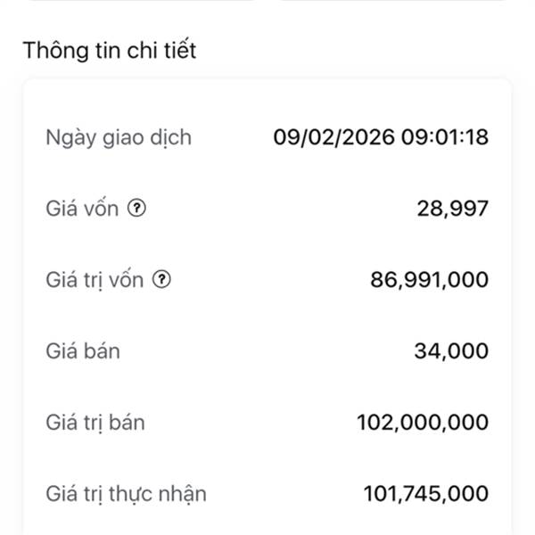 Nay recover được hàng bán 31.5 hôm trước. Hy vọng không sai
