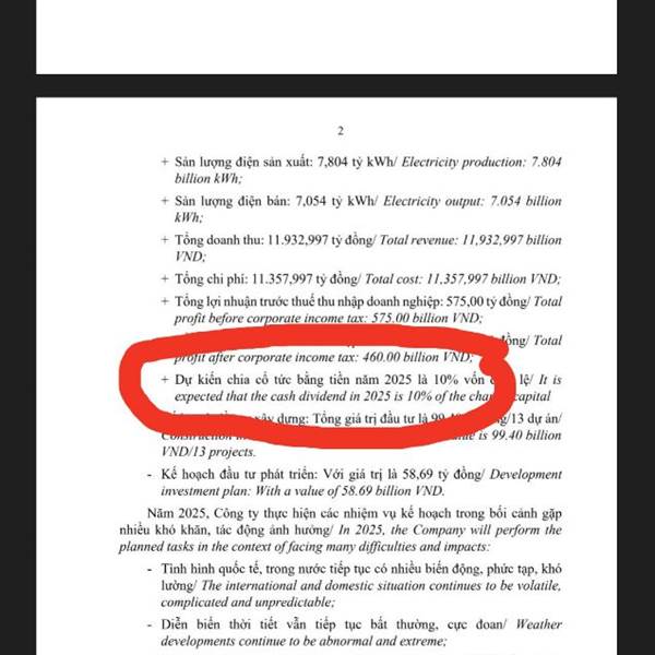 Kế hoạch 2025 là : dthu, ln ...này kia kia nọ và kế hoạch cổ tức là 10%