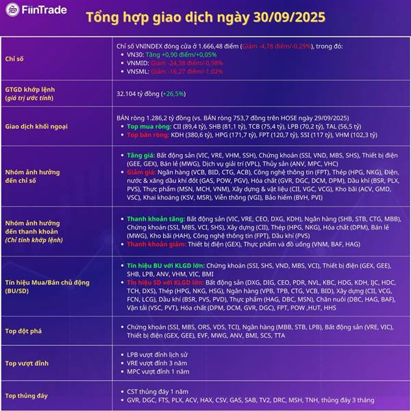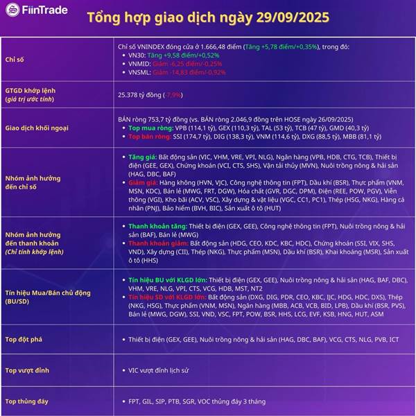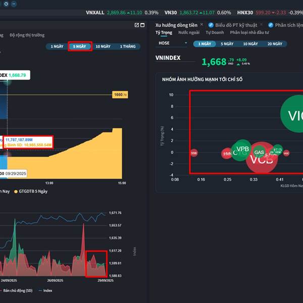 💥Thị trường phiên sáng 29/9: Nhóm Vin "gồng" chỉ số