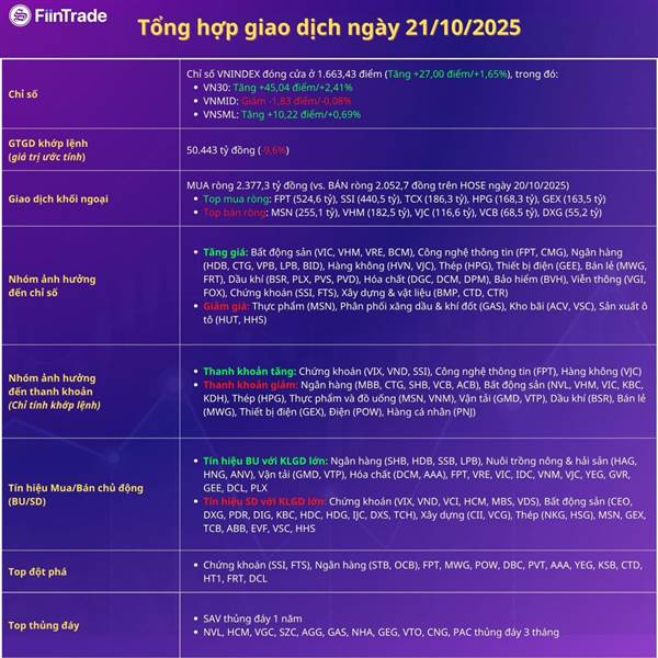 ✅ NHẬN ĐỊNH THỊ TRƯỜNG CHỨNG KHOÁN NGÀY 21-10-2025 : PHỤC HỒI SAU CÚ SỐC.