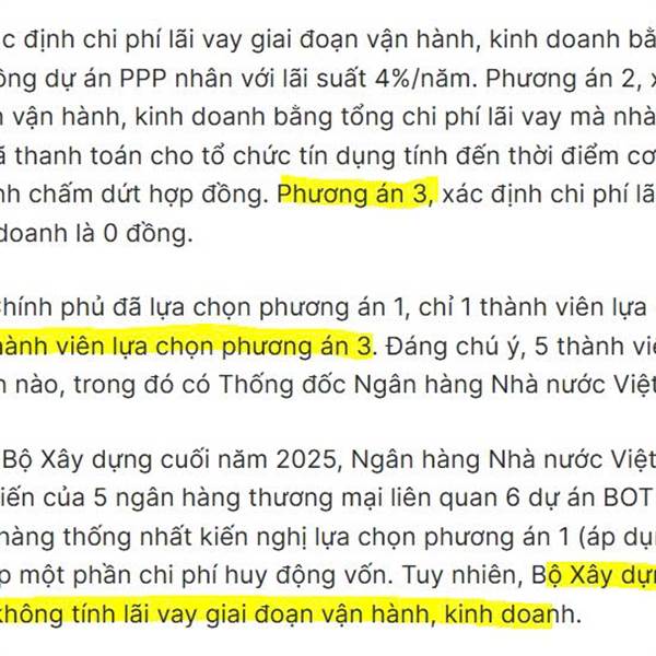 Chi phí lãi vay trong giai đoạn vận hành, kinh doanh đối với các dự án BOT phải chấm dứt hợp đồng là nội dung duy nhất còn có ý kiến khác nhau tại Dự thảo Nghị định quy định chi tiết về việc xử lý vướng mắc của dự án BOT giao thông.