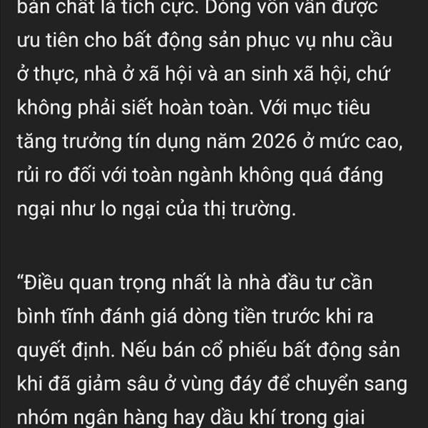- Siết tín dụng nhưng giữ ở mức bằng năm 2025 (25-30%)