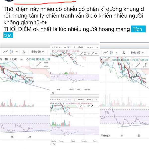 Thời điệm này nhiều cổ phiếu có phân kì dương khung d rồi nhưng tâm lý chiến tranh vẫn ở đó khiến nhiều người không giám t0-t+