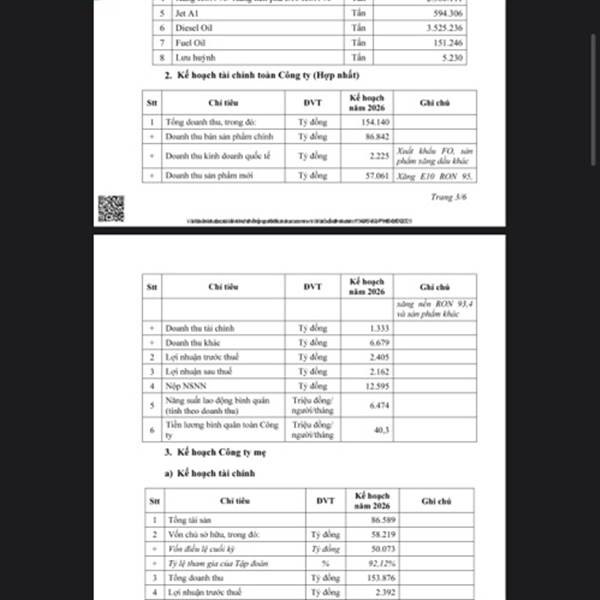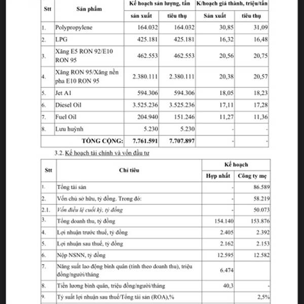 2 tờ đầu Kế hoạch tạm thời cty công bố từ cuối năm để SX , dựa theo giá dầu 75 usd ,