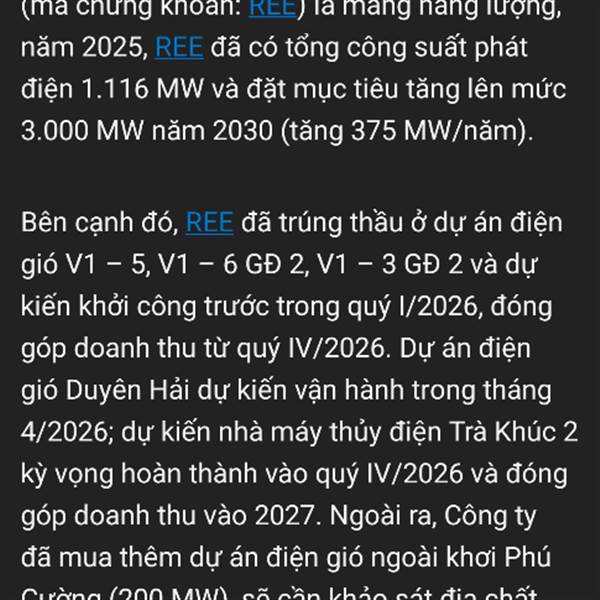 CTCP Cơ Điện Lạnh (HOSE: REE) công bố tài liệu họp ĐHĐCĐ thường niên với nhiều nội dung đáng chú ý, cho thấy định hướng mở rộng mạnh mẽ sang lĩnh vực năng lượng tái tạo, đặc biệt là điện gió.