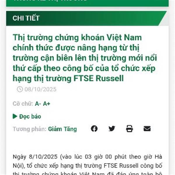 Dự kiến FTSE sẽ ra báo cáo từ 3-4 giờ sáng mai 08/10/2025 theo giờ VN.