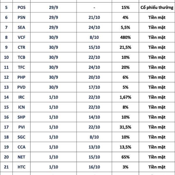 CHỐT QUYỀN CỔ TỨC TUẦN TỚI