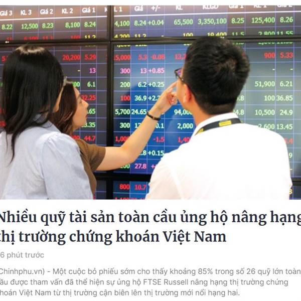 Theo Market Insider, kết quả tham vấn tháng 9 của FTSE Russell (một tổ chức đánh giá, xếp hạng thị trường chứng khoán toàn cầu) cho thấy khoảng 85% trong tổng số 26 quỹ lớn toàn cầu được...Thêmhttps://www.facebook.com/share/p/17KaDj6aHt/