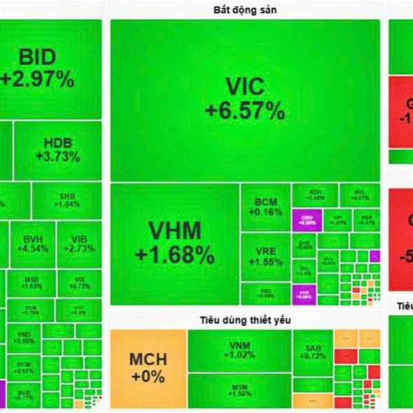 Nhóm Vin có phiên tăng mạnh khi đóng góp hơn 21đ tăng cho Index, trong khi các nhóm ngành còn lại đều chịu áp lực điều chỉn...Thêm