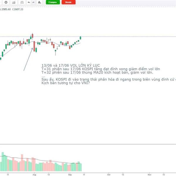 Quan sát KOSPI để luận VNI. Từ tháng 4 tháng 5... suốt khoảng thời gian trước, em đã chia sẻ nhiều về góc nhìn liên thị trường và VNI vận động giống các thị trường châu Á cụ thể là KOSPI. Về thị trường...Thêm