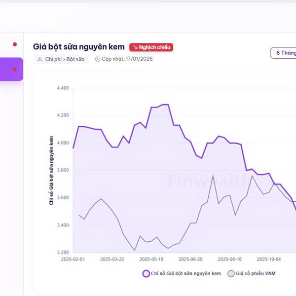 Diễn biến giá bột sữa nguyên kem và giá cp VNM