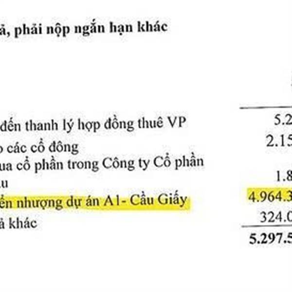 - Chuyển nhượng dự án Constrexim Complex Cầu Giấy cho đối tác là Công ty Việt Minh Hoàng. Trên BCTC đã có khoản đặt cọc này với hơn 4964 tỷ đồng.