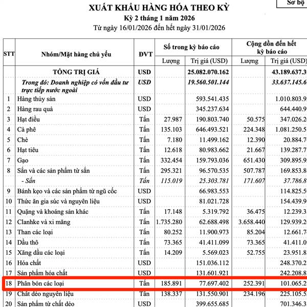 xuất khẩu phân bón nửa cuối tháng 1 gấp 3 lần xuất khẩu nửa cuối tháng 12, xuất khẩu toàn tàu lớn