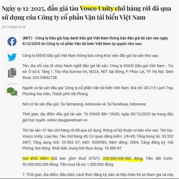 CTCP Vận tải Biển Việt Nam (Vosco, HOSE: VOS) vừa công bố báo cáo tài chính quý 3/2025 với kết quả tích cực nhất trong hơn 1 năm qua, chủ yếu nhờ khoản thu 99 tỷ đồng từ việc bán tàu Vosco Star. Doanh nghiệp ghi nhận lợi nhuận ròng 131 tỷ đồng, trong khi cùng kỳ 2024 lỗ 14 tỷ đồng.