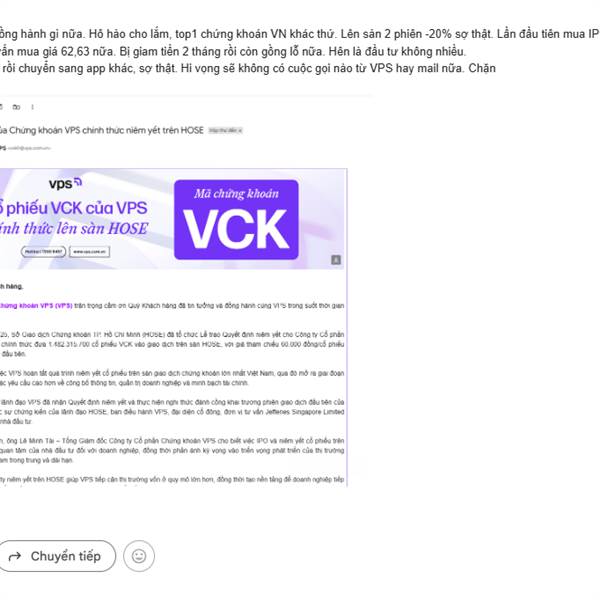 Bình thường App chứng khoán VPS khi lỗ quá -5% thì bắt đầu báo lỗ rồi đưa ra lời khuyên. Riêng con VCK không thấy báo lỗ để giải quyết???😶