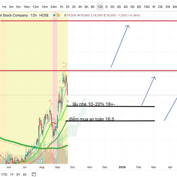 Phân tích NKG • Xu hướng: Vẫn trong trend tăng trung hạn • Hỗ trợ: 18 là vùng hỗ trợ gần, 16.5 là điểm mua an toàn hơn. • Kháng cự: Vùng 20–21 trước mắt, xa hơn 23–24.